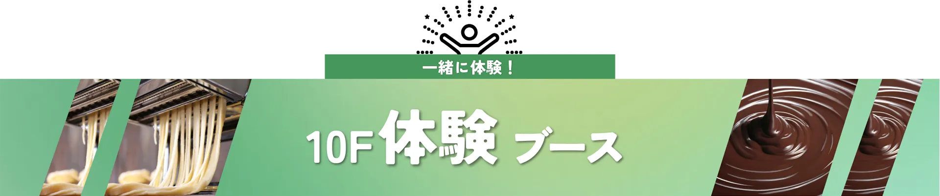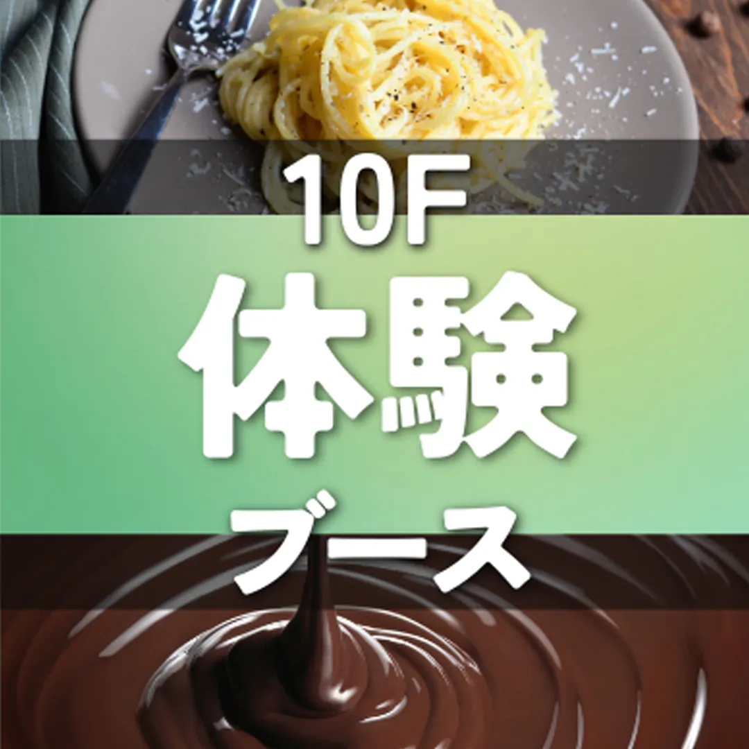 今年は10Fでも体験が追加!10Fはおいしい体験、8Fは楽しい体験ブースが集合!全て体験無料!