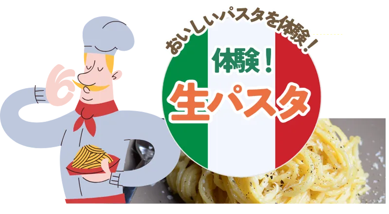 学生といっしょに生パスタを切って作る、できたておいしい体験!